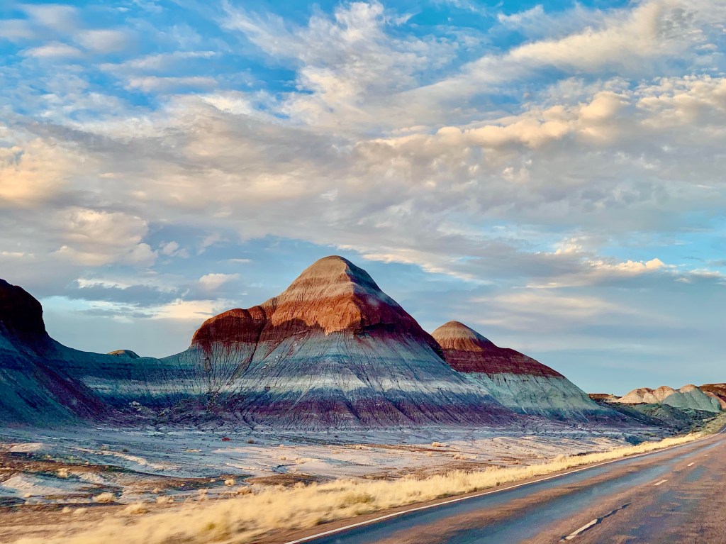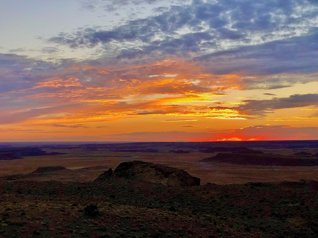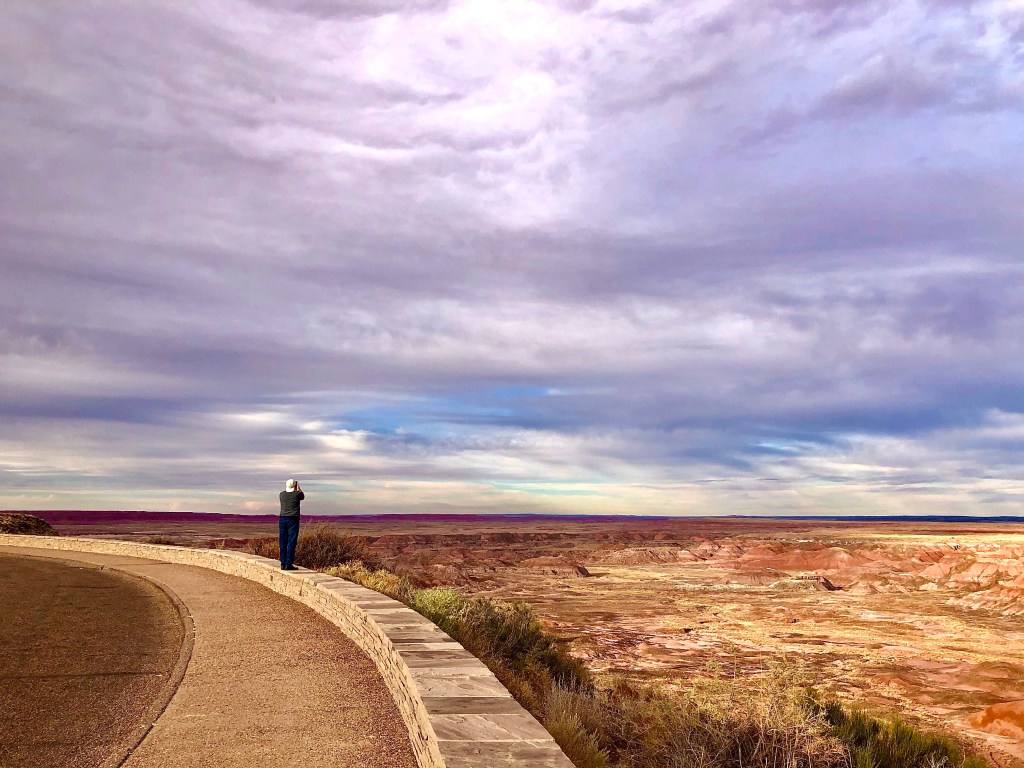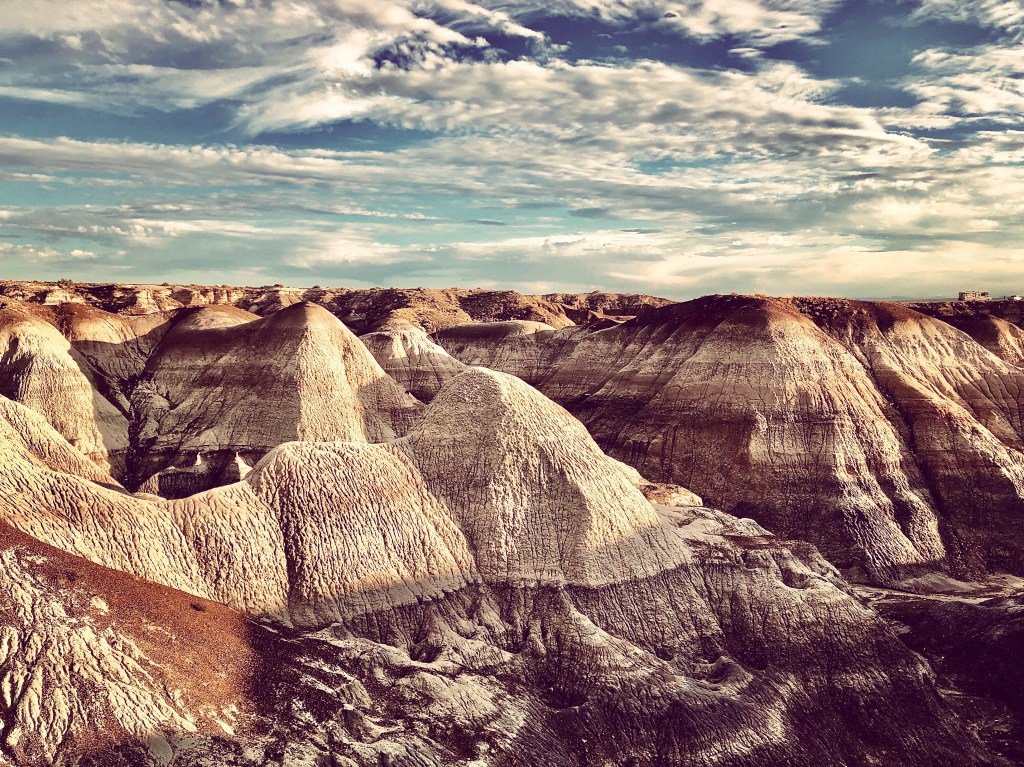 The consolation prize for us on this day would end up being potentially my favorite stop of the trip. The Peacemaker chose the Petrified Forest National Park, and we were on a race to get to this spot in Northeastern Arizona before sunset. Arizona sunsets can be some of THE most amazing and we weren’t disappointed.